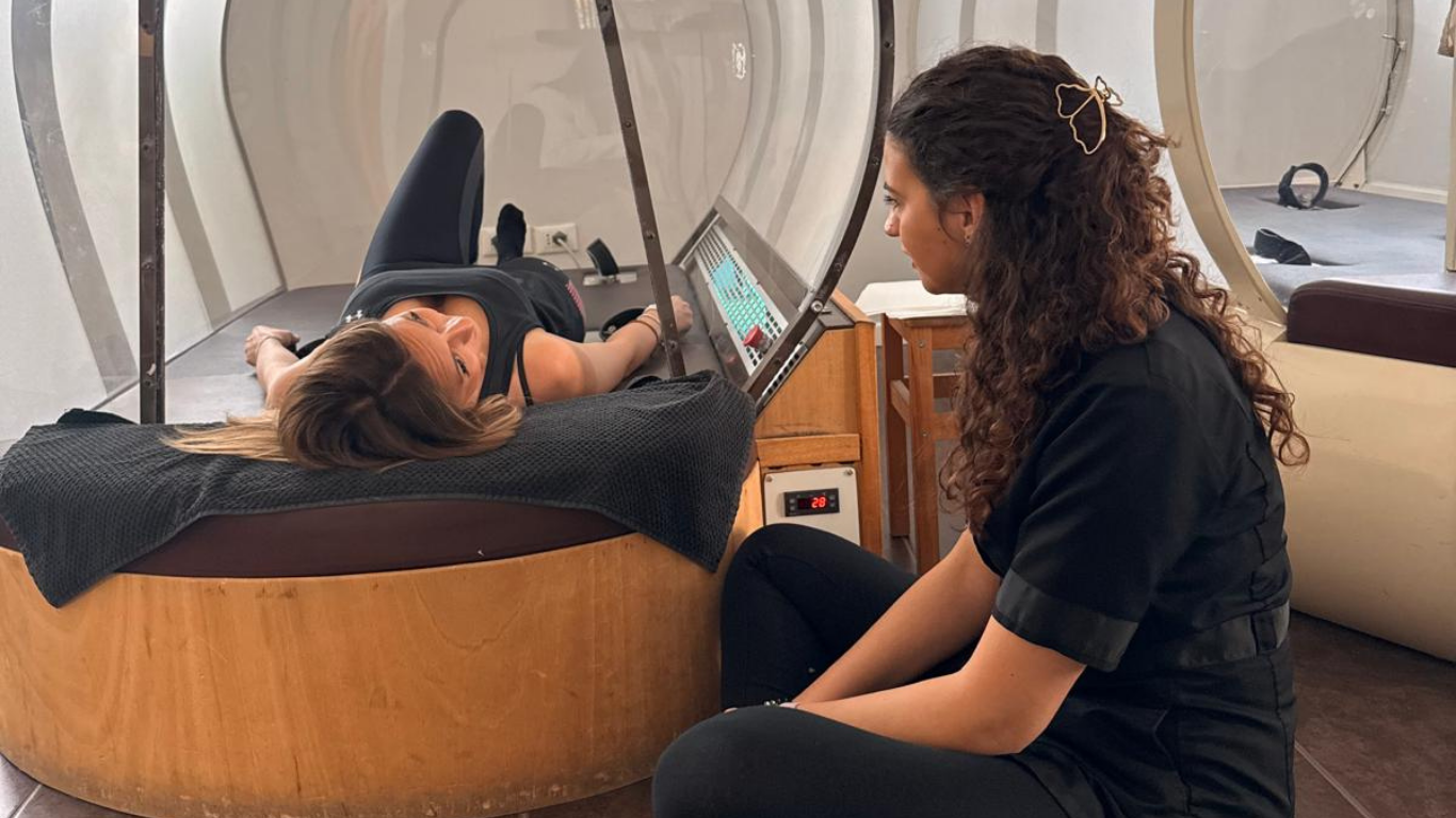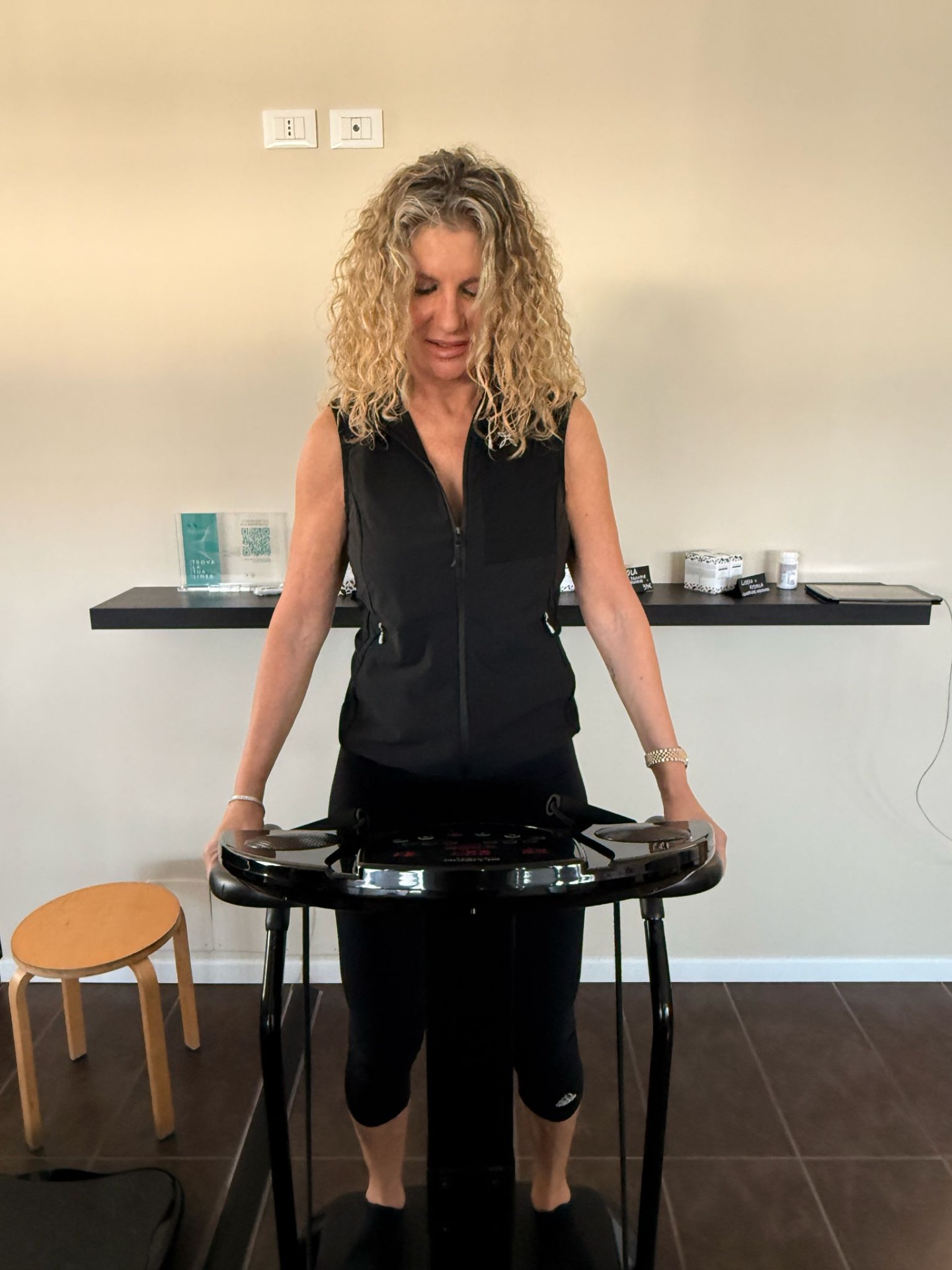 Dopo l'allenamento, il percorso continua con la pedana basculante, che stimola il sistema linfatico e migliora la circolazione.
